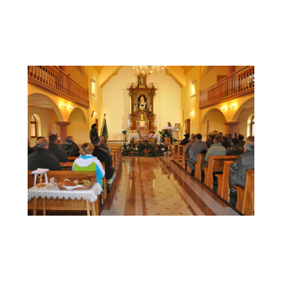 Na zbiórce koło „małego przkażnika” pojawiło się 20 myśliwych i 12 naganiaczy. Po sprawnej odprawie przeprowadzonej przez łowczego H.Tymejczyka zajęliśmy wylosowane stanowiska w kierunku Góry Jawor. I tym razem podobnie jak w 6-go grudnia 2009 r miejce okazało się magiczne i obfitowało w zwierza. Jedno pędzenie i mogliśmy ułożyć pokot. Po wręczeniu złomów i medali , myśliwi złożyli sobie wzajemnie życzenia świąteczne i połamali się opłatkiem. fotorelacja>>>