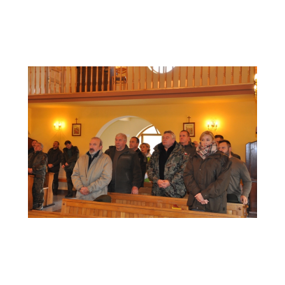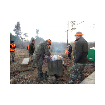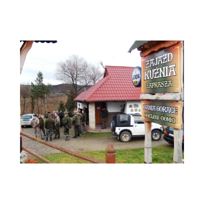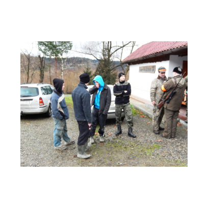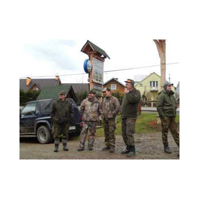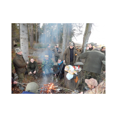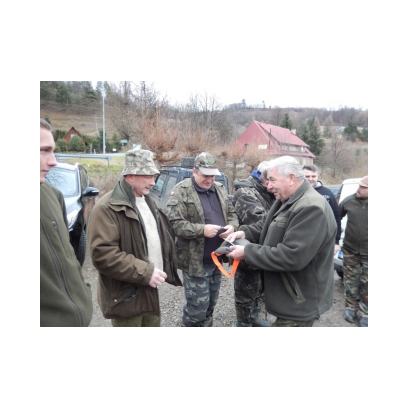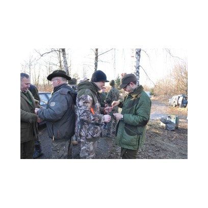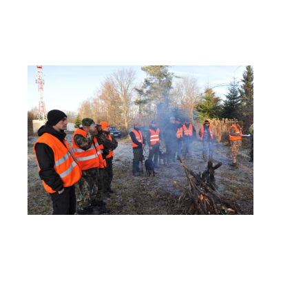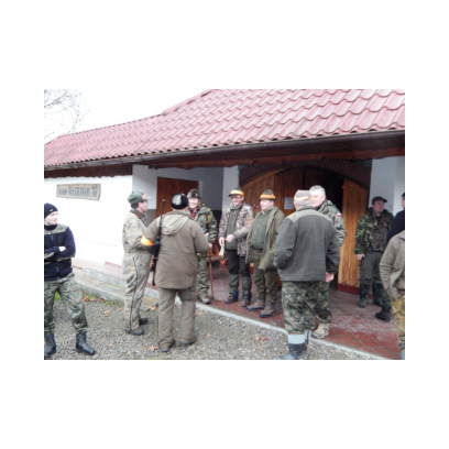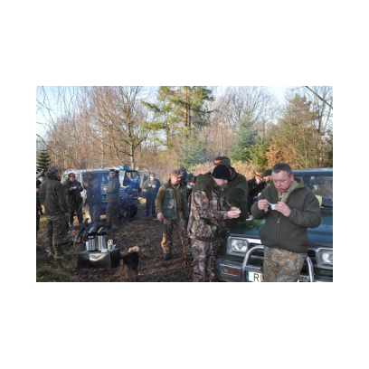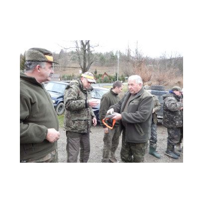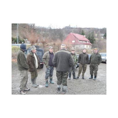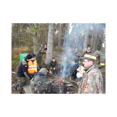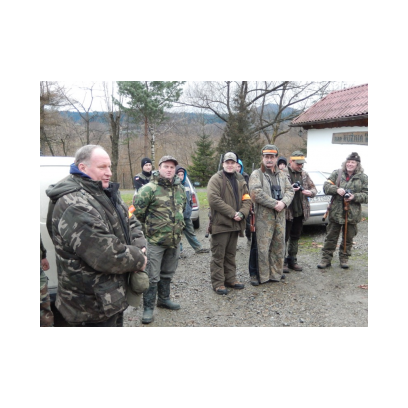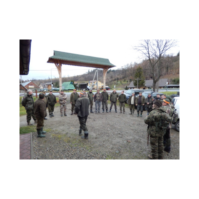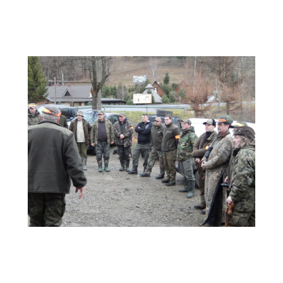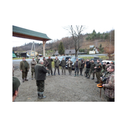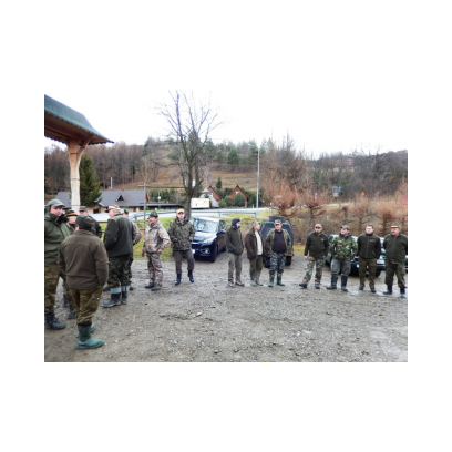 /12 grudnia 2015r/Trzecie polowanie zbiorowe w 2015/2016 Po odprawie na placu „Kuzni” w Wołkowyji myśliwi w liczbie 23 (w tym dwóch myśliwych niestowarzyszonych i czterech z zaprzyjaznionego Koła z okolic Niska ) wybrali się w łowisko Wola Górzańska, aby tam od tzw. wodospadu zastawic linię aż po granicę Koła na Lipowcu. Naganka wzmocniona jeszcze dwoma myśliwymi ruszyła od drogi Górzanka-szkólki.Mimo wielkiego zaangażowania każdego z naganiaczy myśliwym na linii nie był dane nawet ujrzeć zwierza. Drugie pędzenie w okolicach „Wierchów” było bardziej zachęcające do brania udziału w polowaniach zbiorowych.Chmara jeleni i duża wataha dzików pojawiły się na lini lecz w sprytny sposób ominęły myśliwych. Jedynie kol. Lucjan miał szczęście oddać strzał do grubego odynca ,zostając królem.... pudlarzy.Na zakończenie w radosnej atmosferze wokół płonącego ogniska, posililiśmy się pieczoną kiełbaską i wymienialiśmy się wrażeniami z zakonczonego szczęsliwie dla zwierzyny polowania.