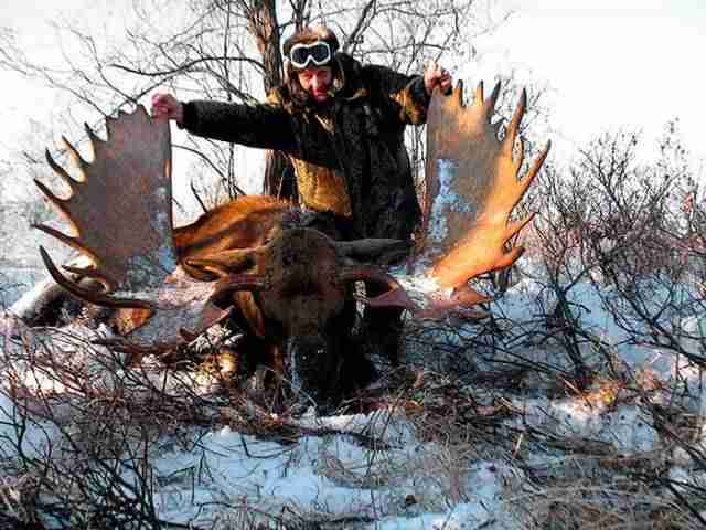 w przeciwieństwie do europejskiego zawsze osiąga formę łopatacza. Jest on największym przedstawicielem jeleniowatych na świecie. Łosie z Yukonu mogą osiągać wagę blisko 1000 kg i wysokość w kłębie 230 cm. W okresie bukowiska myśliwy stara się zwabić łosia odgłosami godowymi. Polowanie niezwykle malownicze, aczkolwiek dość trudne . Okres w jakim organizuje się polowania na łosie to październik i listopad.