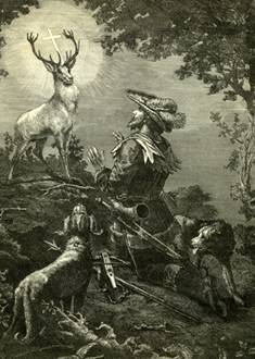 Myśliwi święto to czczą uroczystymi łowami, poprzedzanymi mszą świętą.